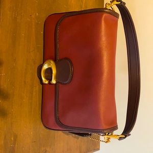 Beautiful maroon and brown Coach bag never used. Shoulder strap included. Clutch or shoulder or cross body with larger strap