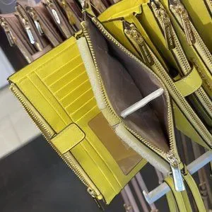 2 zip pocket/ ID window pocket/ 6 credit card slots / slip compartment/ phone compartment