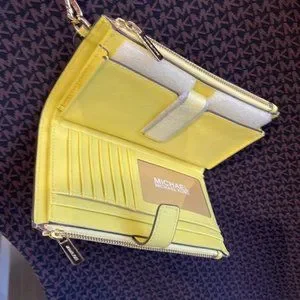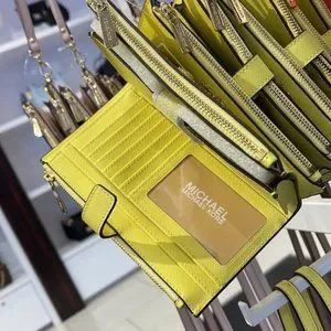 Michael Kors Jet Set Travel Large Double Zip Leather Wristlet Sunshine Yellow