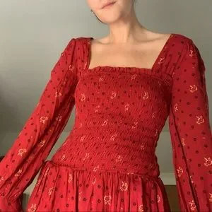 This dress is stunning and full of detail that makes it extra special including a drop waist, princess/balloon sleeves, a square neckline, cloth button closure at the wrist and back and more! A gorgeous, deep red color, this dress is perfect for fall and winter! Size XS but has more than enough stretch to fit up to a size 4! NWT and in mint condition!