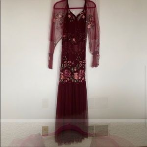 Long sleeve embroidered floral evening dress size S . Perfect condition . Fast shipping
