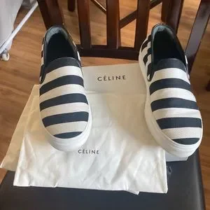 CELINE slip on canvas stripes sneakers like new, with dustbag/box, 40.5