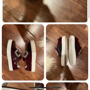 Worn few times, excellent condition ROGER VIVIER SNEAKY VIV CRYSTAL BUCKLE SNEAKERS BURGUNDY PATENT LEATHER 37.5.