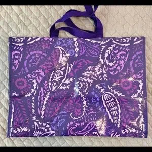 Vera Bradley Shopping Bags, set of 3 new without tags (never had tags), bright pink and the burgundy holiday are taller, purple paisley is slightly shorter & wider & has an inner pocket. Great condition! Folded from storing with no use. Use for reuseable shopping bags β»οΈ or store or gift your VB bags! π