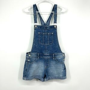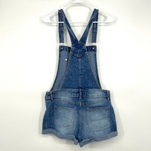 No Boundaries Denim Shortalls Juniors Size Medium Blue Cuffed Overalls Relax Fit. Great pre-owned condition. Button closure. Front/back pockets.