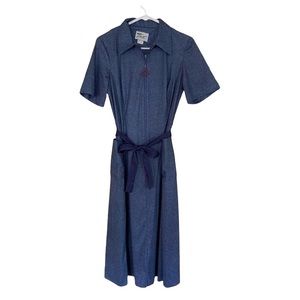 Vintage 70s Retro Blue Dagger Collar Zip Tribute Dress