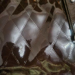 Vittadini XL Tote Bag Weekender Travel Bag Diaper Bag Brown Patent Leather