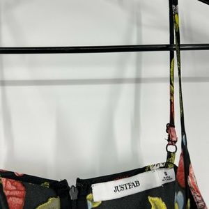 JustFab Slip Dress Womens Size Small Satin Black Floral Print Lace Trim V Neck Sleeveless. Great pre-owned condition. Adjustable straps.