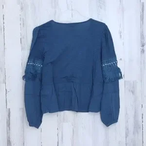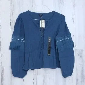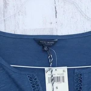 Lucky Brand Cutout Peasant Top Blue Small