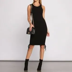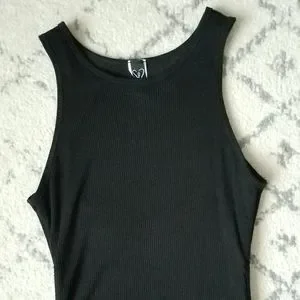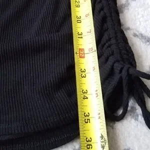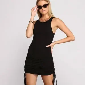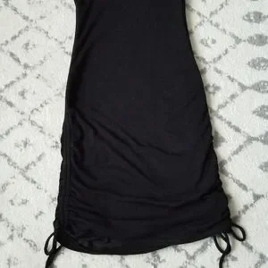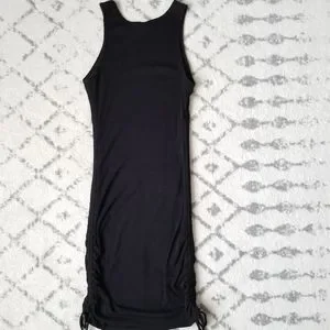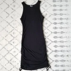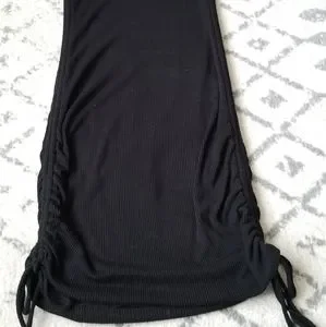 -Super cute black tank dress, cinching at sides allows for adjustable length -Soft and stretchy ribbed material -Fully lined -Sz L