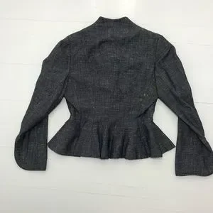 Heathered Gray woven fabric, fully lined. Button down front with collared neckline. Peplum shape, long sleeves. Excellent vintage condition, some signs of wear are to be expected due to age and delicate nature of fabric. No big flaws to note, she is beautiful!