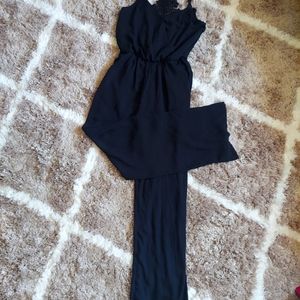 Gorgeous pantsuit by I.N. Ladies size small. Pantsuit is a 100% polyester which provides a silky feel and wear. Pantsuit is equipped with 2 side pockets and plunge neckline. The top has a tiny snap closure for secured coverage.