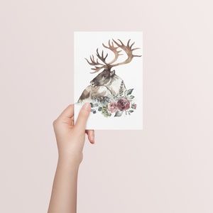 TAGS: Cute Animal, Nursery Decor, Modern Wall Art, Physical Art Prints, Animal Portrait, African Jungle, Tropical Art Prints, Watercolor Floral, Nature Forest, Deer Art Poster, Deer Prints, Home Decor, Girls Bedroom Decor, Moose Artwork, Elk Watercolor