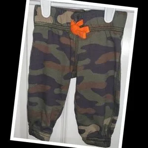 Adorable camo colored baby joggers in excellent gently used condition! -brand: Carters -size: 3m Comes from a smoke free, pet free home Bundle to save $$$