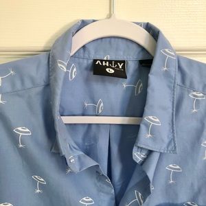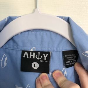 AHOY Surf Co Men's Large Woven Blue Shirt with Beach Umbrella print