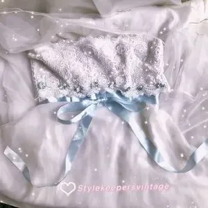 💖Gunne Sax💖Style Romantic Bridal Ivory Blue Ribbon Eyelet Lace Dress Sz S 💐
