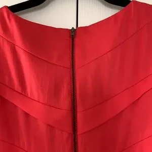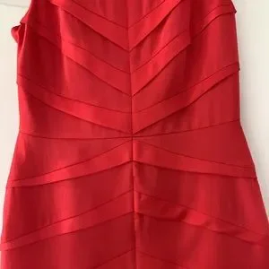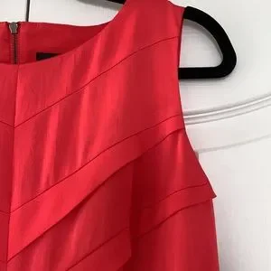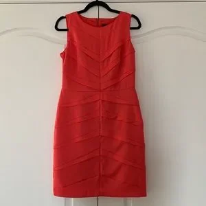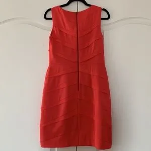 Beautiful coral pink body skimming pleat detail dress by Adrianna Pappel with long centre back zipper.