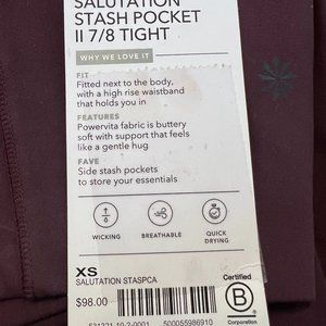 Athleta Salutation Stash Pocket II 7/8 Tight