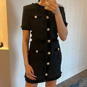 ❌SOLD❌ Balmain 38 Short iridescent black tweed dress