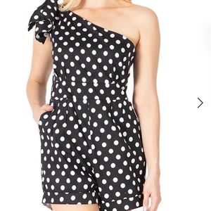 BCBGMAXAZRIA Polka Dots Poplin Romper Shorts Jumpsuit One Shoulder