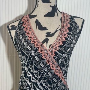 Trendy casual bohemian halter by day/classic rose top& chic Jean jacket by night