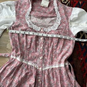 Awesome gunne sax dress!! Has a small yellow stain on the inside elbow that I have no tried to get out! Bleach scares me so it will probably come out if you try to clean it but once it’s on it’s not noticeable at all. I included measurements in the photos and I believe it fits like a 4/6. The bust has a little bit more room than the measurements show fyi!