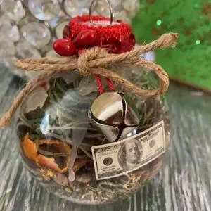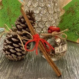 House Blessings, Prosperity, good luck, Protection Witch Ball, set. This kit contains: magic process handmade filled with organics dried herbs, flowers, spices, naturals elements, gold Star decor, jute, trim sealed wax. Cinnamon stick (prosperity element), jingle bell (protection) runes (protection, abundance), pine cone as a symbol of spiritual consciousness and enlightenment, awakening, or immortality, money egregor, properties aligned with energies for intention manifestation, are created with intentions of good vibes new year! Fabric under the moon and stars to blessed and charged with cosmic and moon energy. Material ball: plastic for avoid broken. 3.5” Diameter ball.