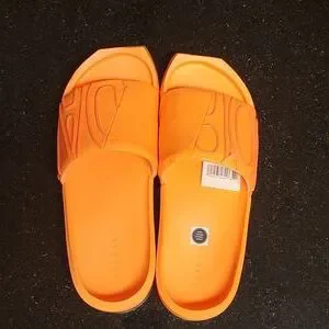 Bright Citrus, synthetic patent, squared-off toe shape offers versatility, molded foam ridge, deep heel cup, framed toe bar helps provide grip as you walk, NWT