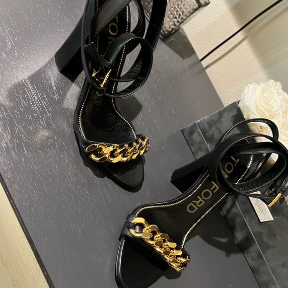 Tom Ford Heels - Smooth Leather Chain Ankle Wrap Sandals
