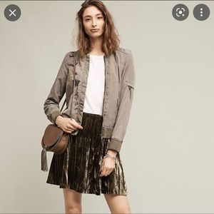 Anthropologie Maeve green velvet mini skater skirt