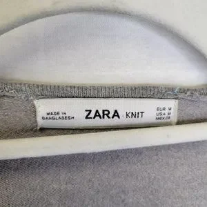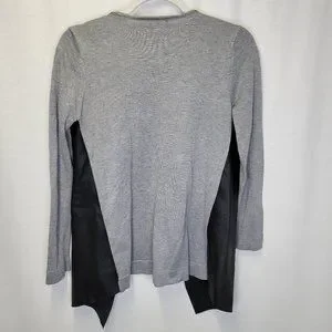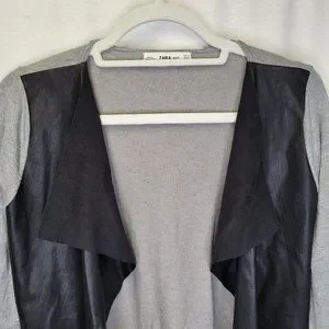 Zara Knit Women's Medium Cardigan Sweater Black Gray Faux Leather