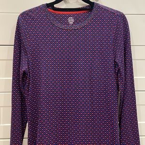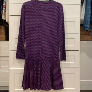 Cute and flattering Tory Burch cotton long sleeve dress in great condition. Barely worn! Very flattering and comfortable on. Bottom part of dress is pleated. Colors are red, blue and black. 100% Pima cotton.