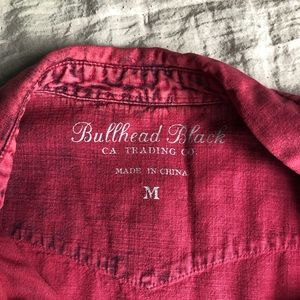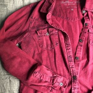 Bullhead maroon/red distressed button up. Cool and edgy with metal buttons and breast pockets. Originally from Pacsun.