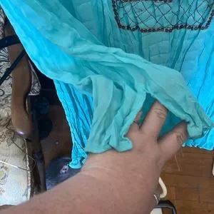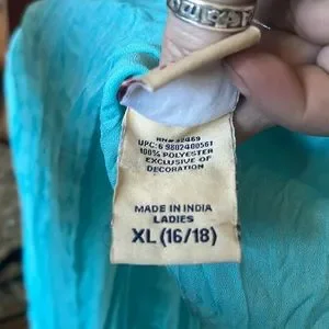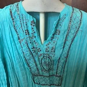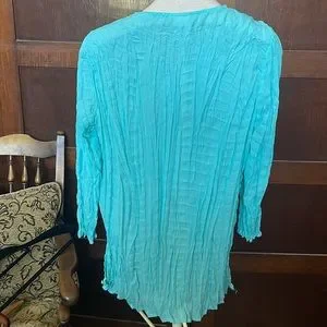 Faded Glory Turquoise Crinkled Crepe 3/4 Sleeve Copper Decor Shirt
