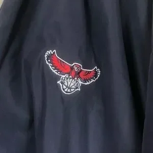 Vintage Atlanta Hawks logo. Pullover, 3/4” sleeves. Wind resistant, water repellent. Micro suede feel.