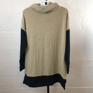 Hugs From Soft Surroundings Colorblock Cowl Neck Sweater Size PL Black Tan #g13