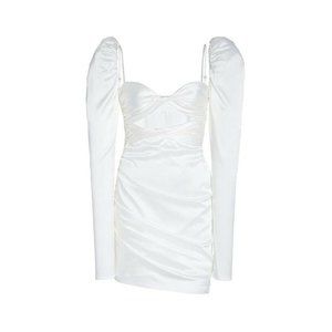 The Bar Twist Dress Ivory White Silk Puff Long Sleeve