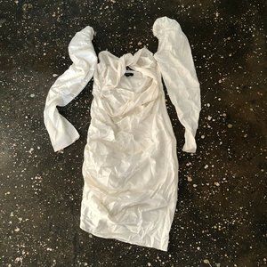 The Bar Twist Dress Ivory White Silk Puff Long Sleeve Party Wedding 6 NWOT $495