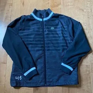 Jacket is a full zipper closure; Lined with mix of polyester and cotton material; Two side zippered pockets in front.