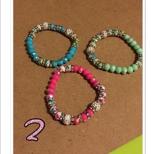 Listing is for three beaded and shamballa bracelets. Choose combination from pictures above