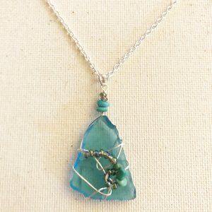 Caribbean Sea Glass Turquoise Gemstone Necklace Ocean Mermaid Beach Coastside CA