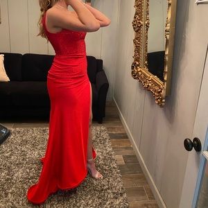 Gorgeous red dress, excellent condition. Cool back that ties on the side. Pictures don’t do this dress justice, it truly is beautiful!