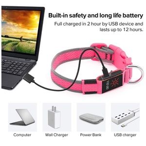 Clan-x LED Dog Collar, USB Rechargeable& Adjustable Mesh Webbing Flashing Light Up Collar Make Your Dogs Seen & Safe at Night (S, Pink)