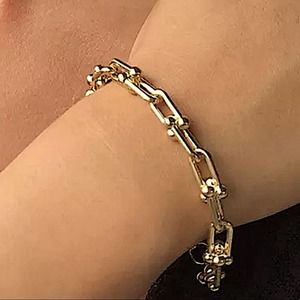 Gold 18K GP Unisex U Shaped Chain Link Bracelet
