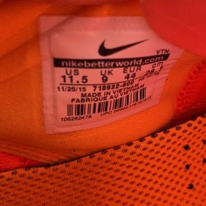 Nike Free Women’s Running Neon Orange Sneaker size 11.5 womens. In good condition, they have just been washed and ready for a new home.