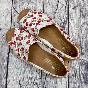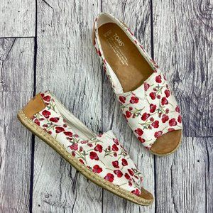 TOMS Espadrilles Red Pansy Floral Print Women's Size 7.5 Slip On Open Toe Sandals