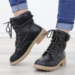 Woman's Faux Leather Lug-Sole Combat Ankle Boots