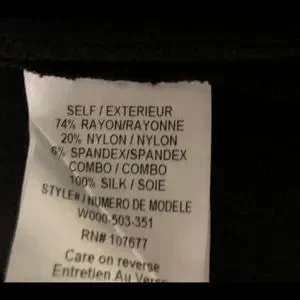 74% Rayon 20% Nylon 6% Spandex