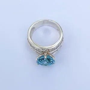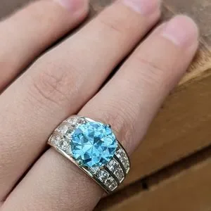New sterling silver 925 ring with clear and blue rhinestone cz