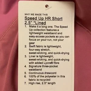 ❤️ Lululemon Speed Up High-Rise Lined Short 2.5" Pink Blossom Size 6 NWT